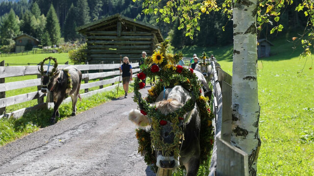 Rund 90 Stück Vieh, das den Sommer über auf der Bergalm, der Ontrattalm und der Bärnfiechtalm verbracht hat, trifft am Samstag herausgeputzt ab ca. 12:30 Uhr beim Sennerhof (Jaufentalerhof) ein. Los geht der Almabtrieb ab 10.00Uhr.