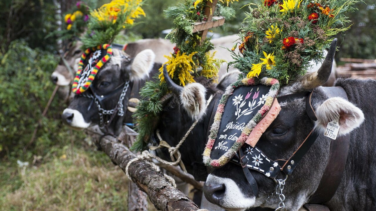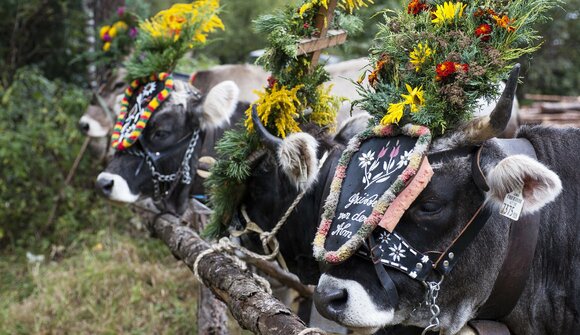 Der Almabtrieb in Zwieselstein ist einer von mehreren Almabtrieben im Ötztal - das Vieh kehrt von den Sommerweiden ins Tal zurück.