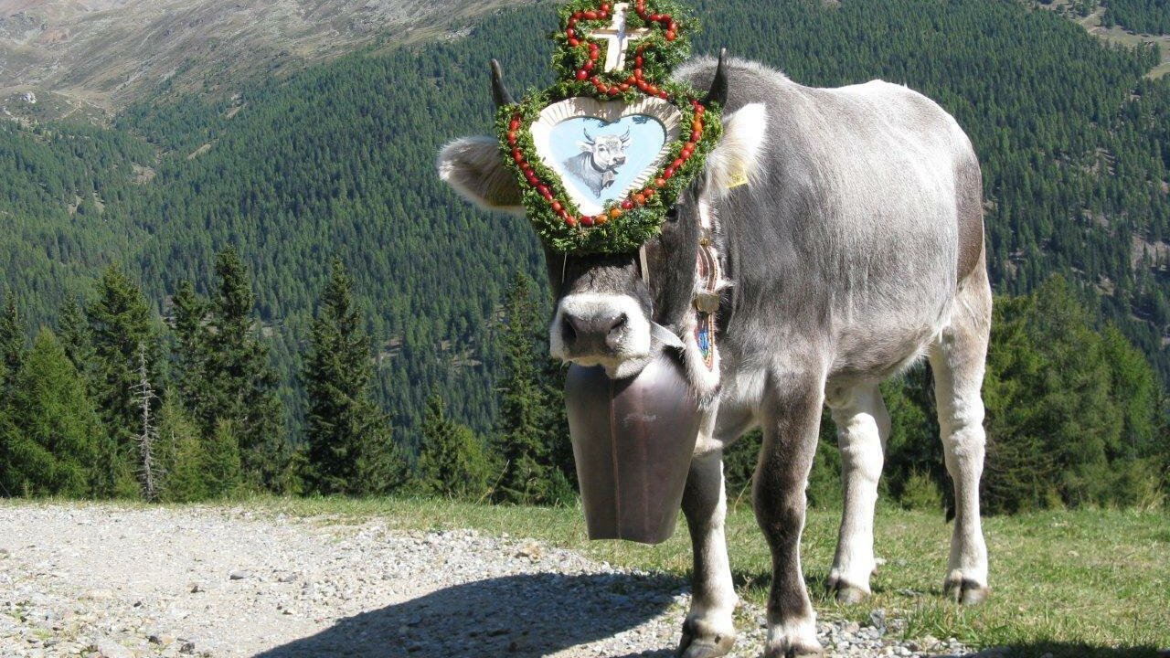 Am 12. September kehren die festlich geschmückten Kühe von ihrer Sommerfrische auf der Seegruben Alm ins Tal zurück.