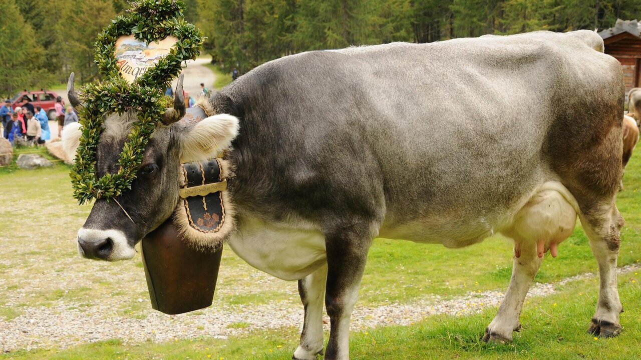 Am 13. September kehren die festlich geschmückten Kühe von ihrer Sommerfrische auf der Mariolberg Alm ins Tal zurück.