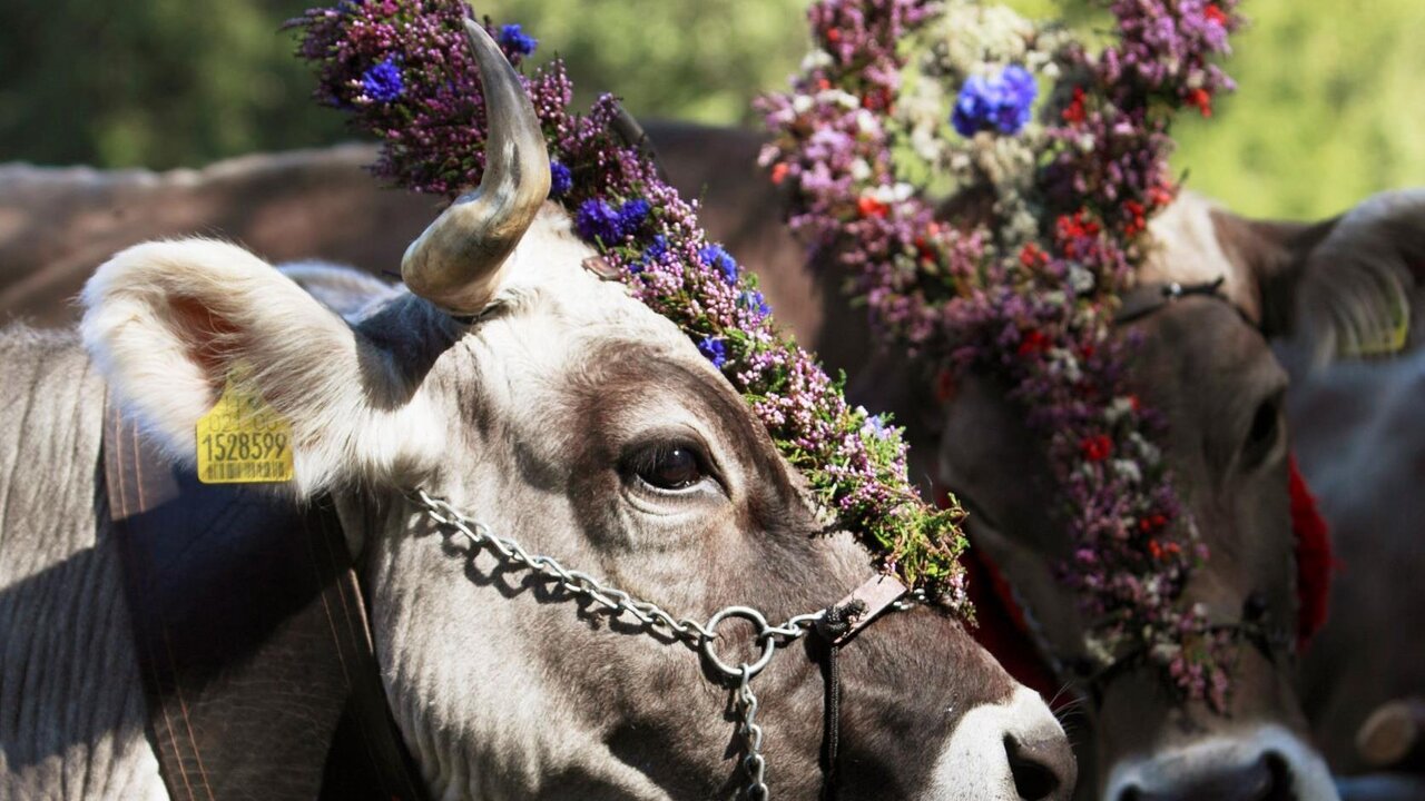 Am 13. September kehren die festlich geschmückten Kühe von ihrer Sommerfrische auf der Stierberg Alm ins Tal zurück.