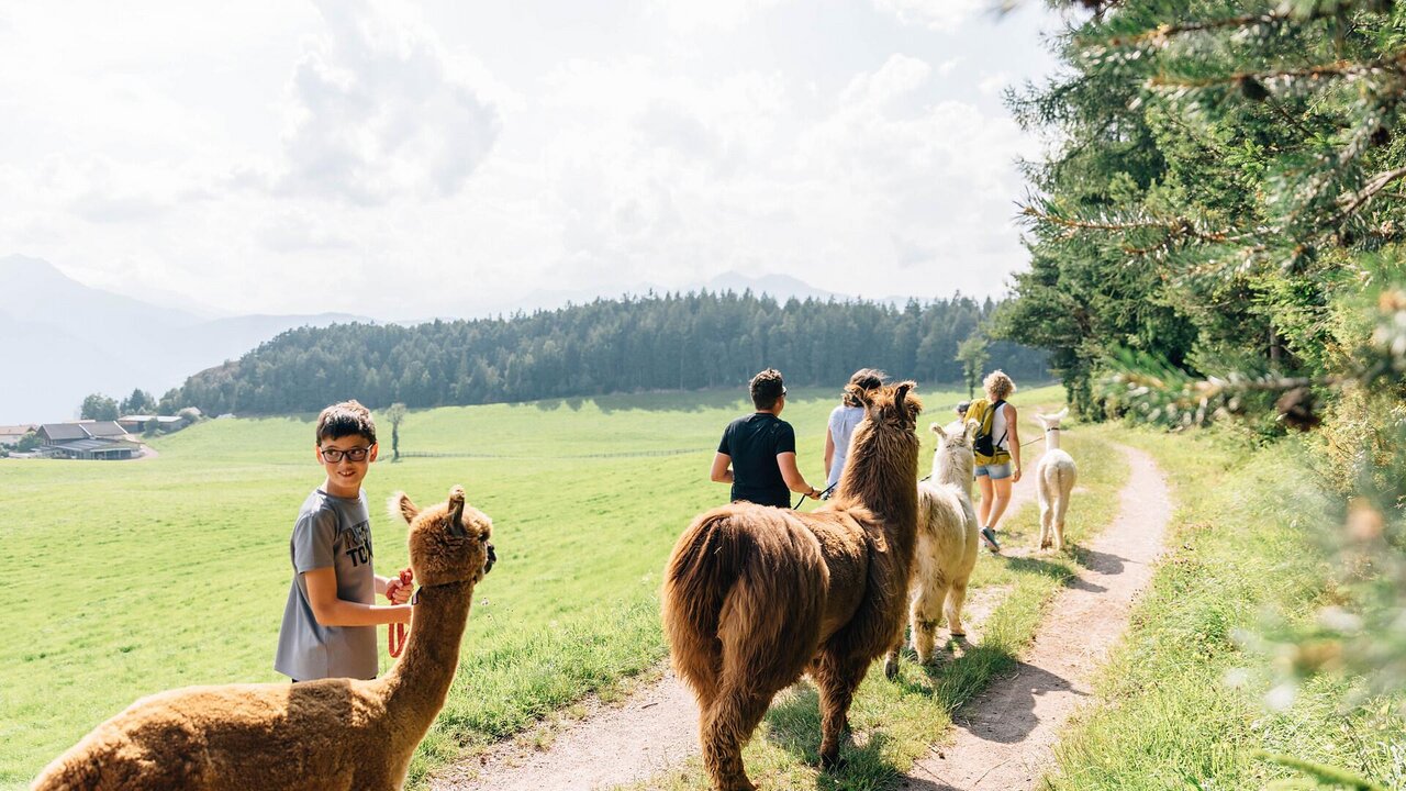 Unsere kleine, überschaubare Herde von Lapakafun – bestehend aus flauschigen Alpakas und Lamas – begleitet dich auf spannenden und unvergesslichen Wanderungen. Von Vöran aus geht es gemeinsam zum Knottnkino 2 „Beimstein“. Der Weg führt durch märchenhafte Waldlichtungen und die ruhige Natur Vörans. Ein Erlebnis für die ganze Familie.