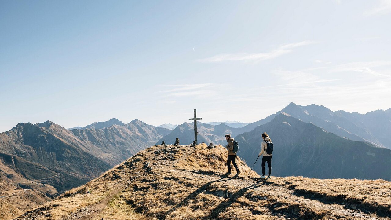Anfahrt über die Timmelsjochstraße bis zum Parkplatz vor der Seeberalm. Kurzer Abstieg und weiter auf dem Weg Nr. 43 zur wenig besuchten Plattenspitze. Beeindruckender Blick auf Rabenstein. Der Abstieg erfolgt auf demselben Weg zurück zum Parkplatz.