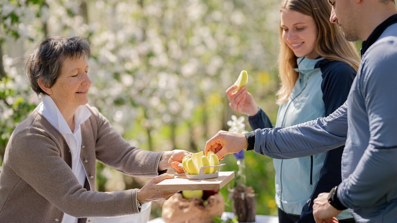 Dem Apfel gebührt ein Ehrenplatz in der Südtiroler Spezialitäten-Galerie. Wir begegnen ihm das ganze Jahr über: als knackige Jause, im Strudel oder als Saft, ja sogar in hochgeistiger Form als Schnaps! Bei der fachkundigen Führung am Hof eines Apfelbauers wird über den Anbau gefachsimpelt und verschiedene Apfelsorten sowie Apfelsaft verkostet.
