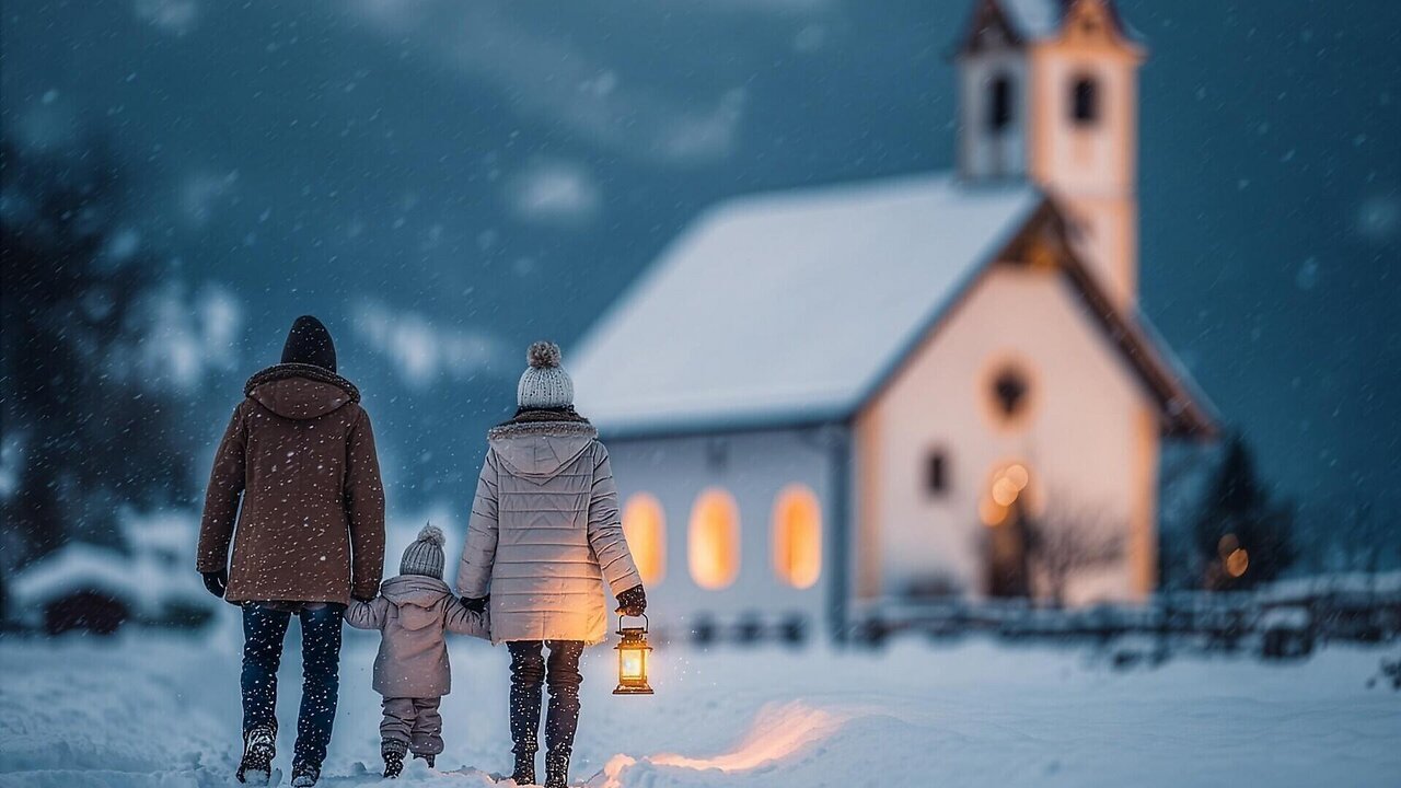 Wenn sich der Heilige Abend über St. Valentin am Haidersee legt und sich Lichter im Schnee spiegeln, beginnt um 17:00 Uhr die feierliche Christmette. Die Kirche wird zum warmen Mittelpunkt des Dorfes, in dem sich Einheimische und Gäste versammeln.