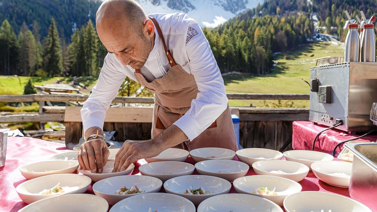 Das Tagesevent an der Bergstation präsentiert Gerichte, die von den Gastköchen zu bestimmten Themen mit jeweils einem Produkt eines heimischen Produzenten / Produzentin oder Bauern / Bäuerin kreiert werden, und von Besucher*innen nach freier Wahl verkostet werden können.