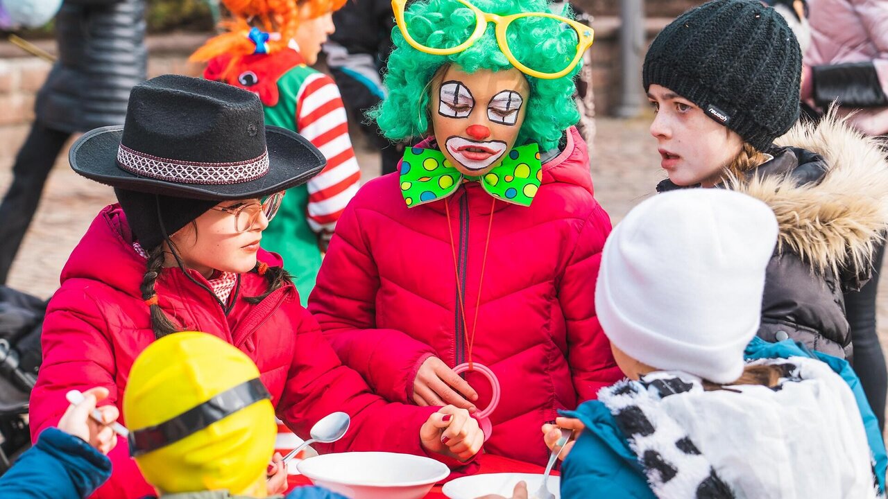Gemäß der Tradition wird am Unsinnigen Donnerstag auf dem Gemeindeplatz in St. Christina eine Gerstensuppe serviert.