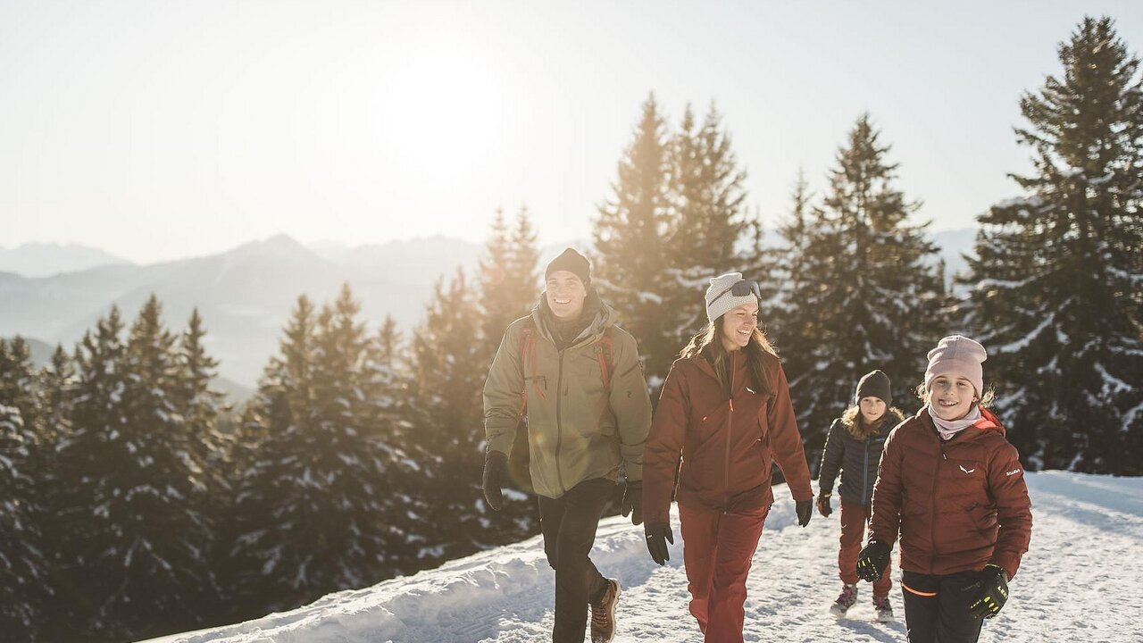 In der Gruppe die verschneite Winterlandschaft erkunden und dabei vielleicht sogar neue Ecken zum Wandern erkunden? Die geführten Winterwanderungen auf Meran 2000 finden an ausgewählten Daten ab 21. Dezember 2025 statt. Die Gruppen von maximal 12 Personen werden von einem Experten geführt.