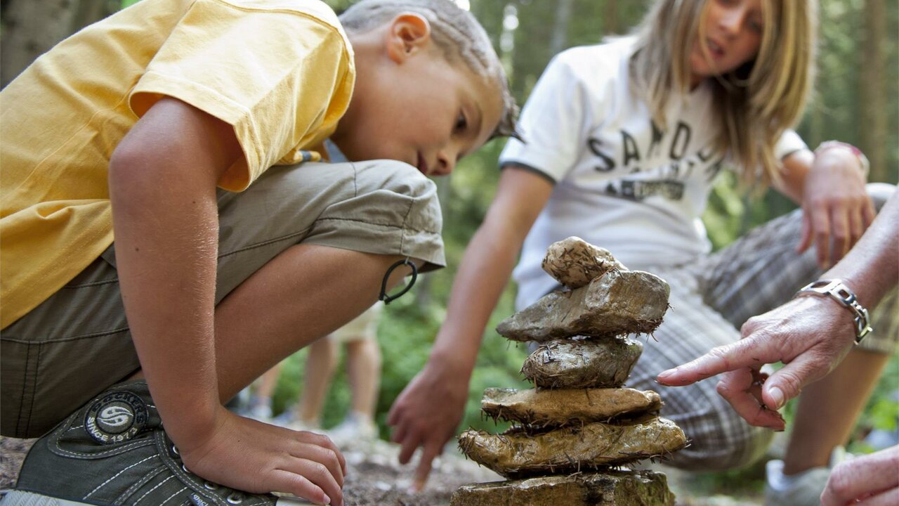 Zusammen wird gemeinsam mit den gefundenen Materialien im Wald unterschiedlichstes gebaut: Holz, Moos, Äste und noch vieles mehr.