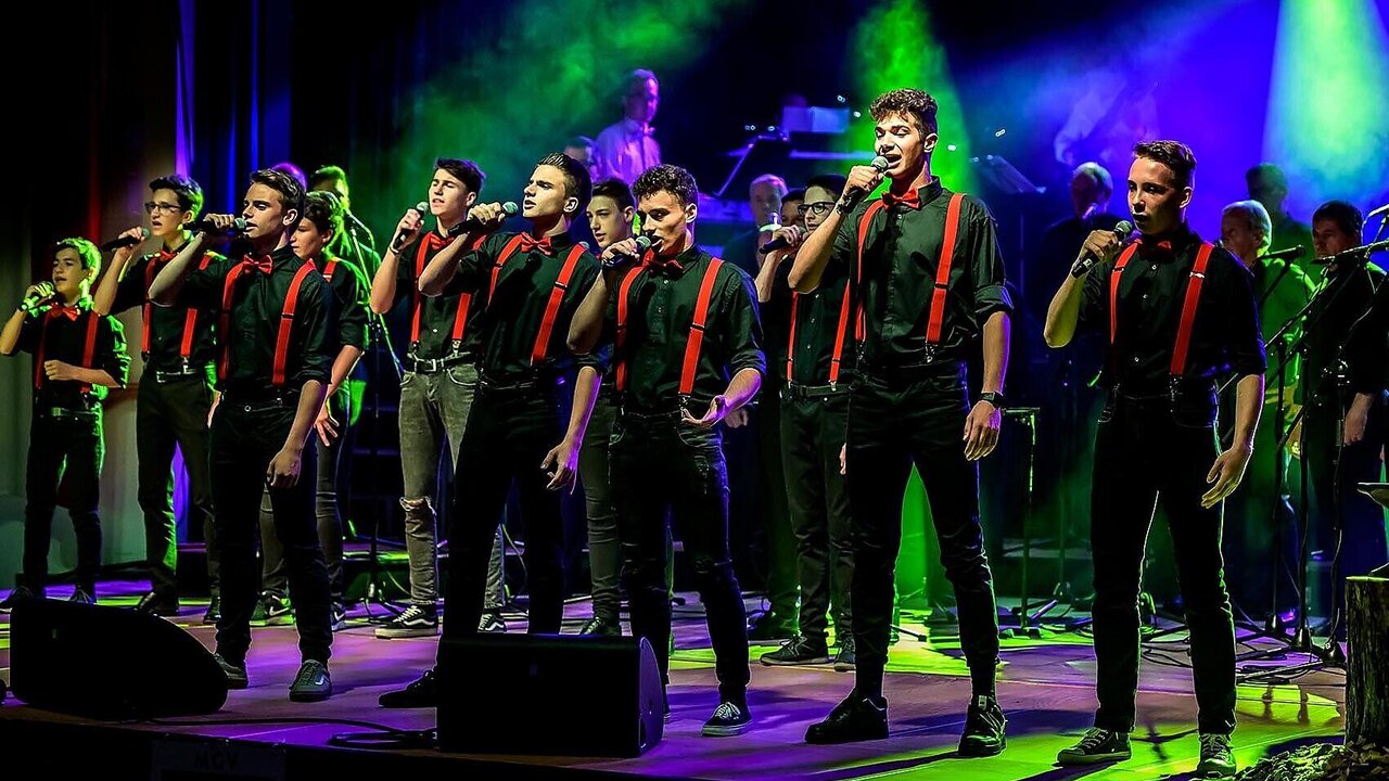 Auftritt des Männerchors Welschnofen mit Band und MGV Boy Grupp im Haus der Dorfgemeinschaft Welschnofen.