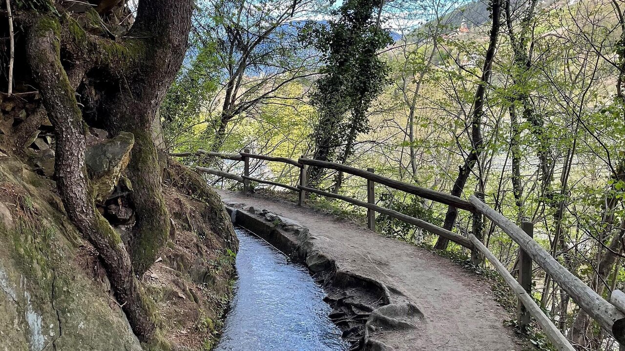 Abfahrt um 9 Uhr mit dem Wanderbus von Steinegg nach Dorf Tirol, wo wir am Sportplatz und Johanneum, ein einstiges kirchliches Gymnasium, gemütlich vorbei wandern. Bei Schloss Auer steigen wir einen sehr alten Plattenweg hinauf in den Wald. Bei einem stetigen Auf und Ab erreichen wir das Dörfchen Kuens. Dort startet der Besinnungsweg ‚Zu den sieben Schmerzen Mariens‘ nach Riffian. Schöne Besinnungspunkte aus Zirbenholz begleiten uns. Ab Riffian steigen wir dann den Rösslsteig nach Saltaus hinunter, wo wir am Bistro Camping unsere späte Mittagspause antreten.