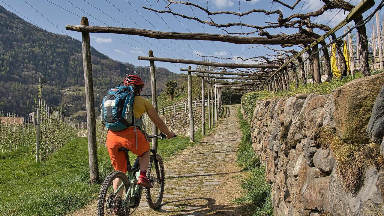 Über die Panoramastraße vorbei an der Meraner Kellerei über Marling zur Forst, der größten Brauerei Italiens. Leicht berghoch fahren wir zum Eingang ins Vinschgau, der Töll. Vorbei am beeindruckenden Wasserkraftwerk rollen wir über das von Bikern liebevoll genannte kleine Stilfser Joch nach Algund. Auf dem Weg nach Meran haben wir eine wunderbare Aussicht auf die drei imposanten Burgen „Schloss Tirol“, „Brunnenburg“ und „Thurnstein“; die kurze Auffahrt nach Tirol ist knackig, aber nicht lang. Wir überqueren das Finele Tal nach Kuens auf dem Tirolersteig, inklusive Ausblick auf einige Erdpyramiden.