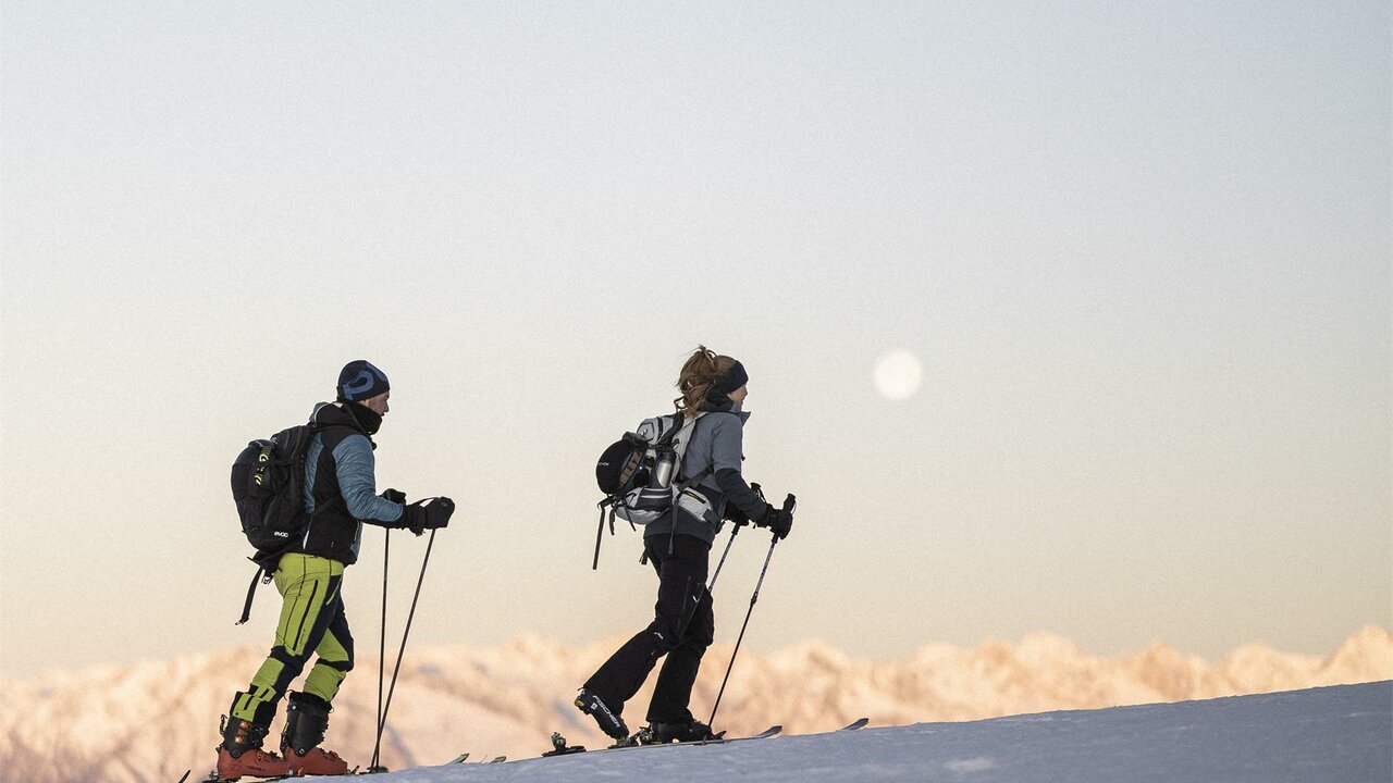 Programm: 9–13 Uhr mit Bergführer Thomas Zelger - Aufstiegstechnik, Geländekunde, Materialkunde, LVS Suche.