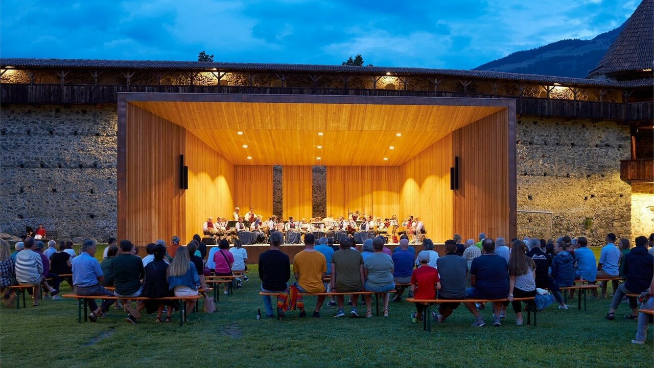 Umrahmt vom tollen Ambiente des Glurns Festival Gelände und inzwischen der alten Stadtmauern lässt es sich wunderbar den Klängen eines Konzertes lauschen!