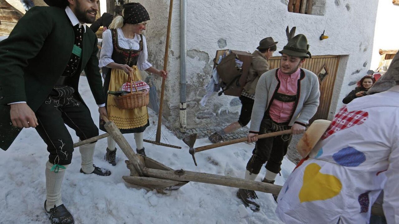 Umzug und Schauspiel durch Stilfs mit Pflug und Bauerngefolge. Händler, Hausierer, Krämer und Kleinhandwerker stören die bäuerlichen Arbeiten und ihre Ordnung.
