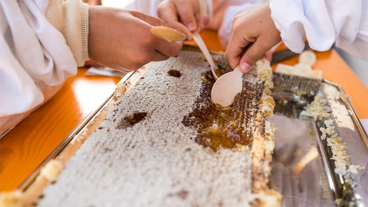 Wir erfahren alles über die Bedeutung und die Sinne der Bienen, die Wichtigkeit einer vielfältigen, blühenden Landschaft und die Aufgaben eines Imkers. Was ist der Unterschied zwischen Wildbienen und Zuchtbienen, wie setzt sich ein Bienenvolk zusammen und wie entsteht eigentlich Honig? Der Imker Christian wird alle diese Fragen beantworten. Wir können die Imkerschutzbekleidung probieren und Honig aus einer fischen Wabe verkosten.