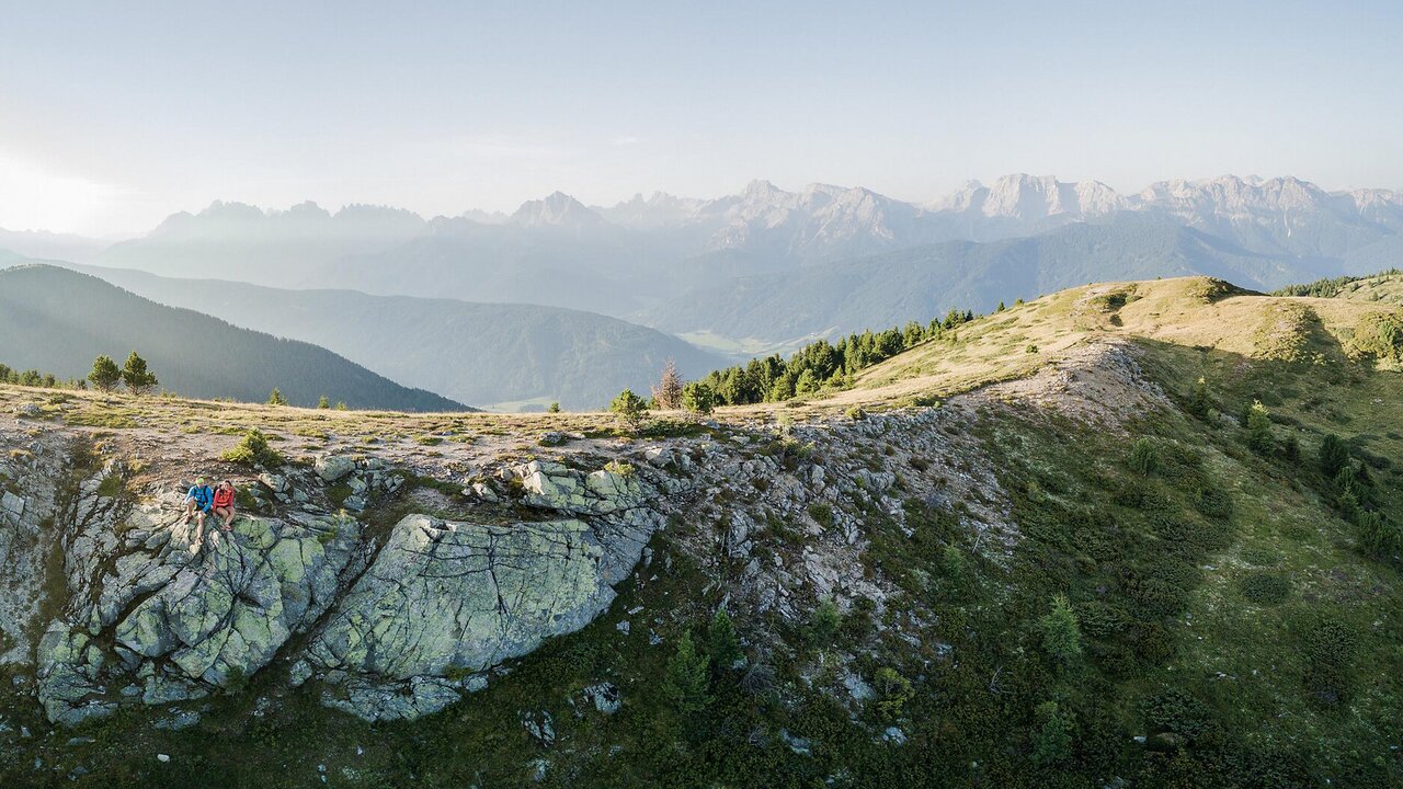 Vom Wanderparkplatz oberhalb von Mudler führt der Weg hinauf zum Lutterkopf, der knapp oberhalb der Waldgrenze liegt. Trotz seiner geringen Höhe bietet der Gipfel eine beeindruckende Rundumsicht. Besonders der Blick nach Süden zu den markanten Felsformationen der Sextner Dolomiten ist faszinierend. Nach Norden öffnet sich das Panorama zur mächtigen Rieserfernergruppe, während im Südwesten der Blick weit über das Pustertal bis zu den Ötztaler Alpen und zur Ortlergruppe reicht. Einkehrmöglichkeit in einer Almhütte.