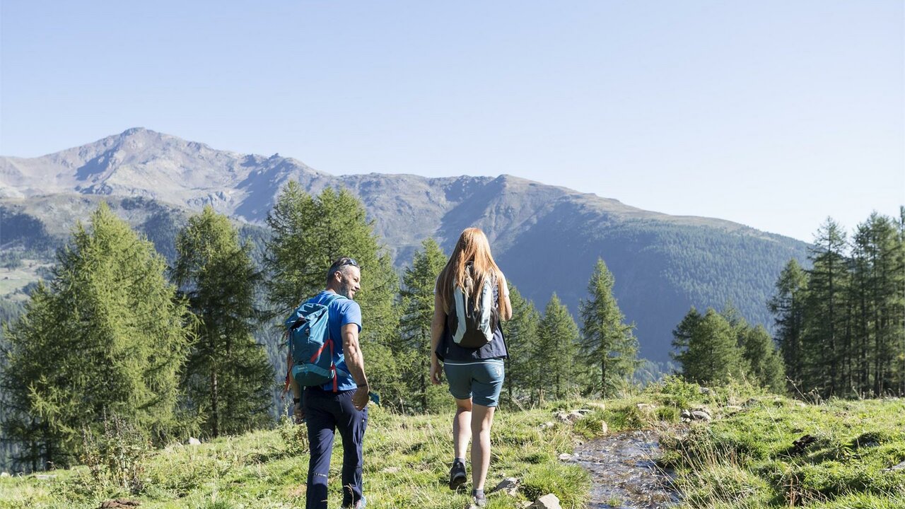 Aufstieg von den Jochmoarhöfen durch das Flatschbergtal erst zur Unteren- und dann zur Oberen Flatschbergalm. Weiter geht es über einen Hang zu einem großen Steinmann und über einem Rücken erreicht man kurz danach das Schusterhüttl, den höchsten Punkt der Wanderung. Der Abstieg führt über die Kaserfeldalm und anschließend nach einer längeren Querung durch dichtere Fichten und Lärchenbestände steil zurück nach St. Gertraud.
