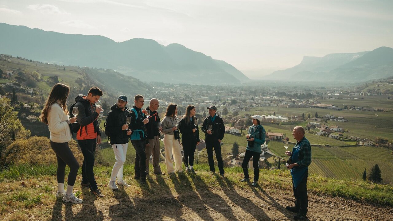 Begleiten Sie einen erfahrenen Winzer durch unsere sonnenverwöhnten Weinberge von Meran, verkosten Sie erlesene Weine direkt vor Ort und entdecken Sie die Geschichten, Traditionen und Handarbeit, die in jeder Flasche stecken.