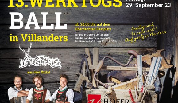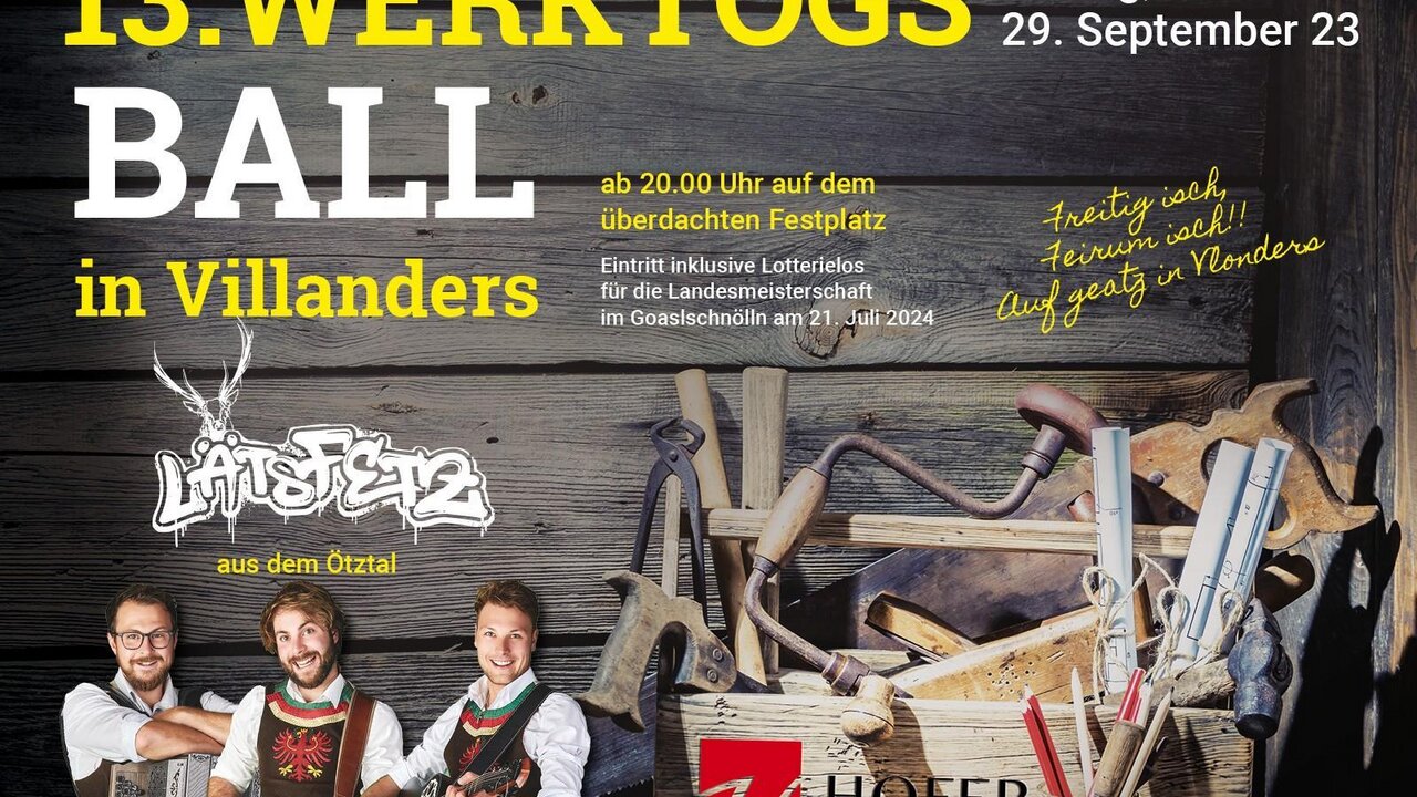 Auf geht's in Villanders...13. Werktogsball mit Läts Fetz aus dem Ötztal! Eintritt inklusive Lotterielos für die Landesmeisterschaft im Goaßlschnölln am 21. Juli 2024 in Villanders. Auf Euer Kommen freuen sich die "Mir Flonderer Goasslschnöller".
