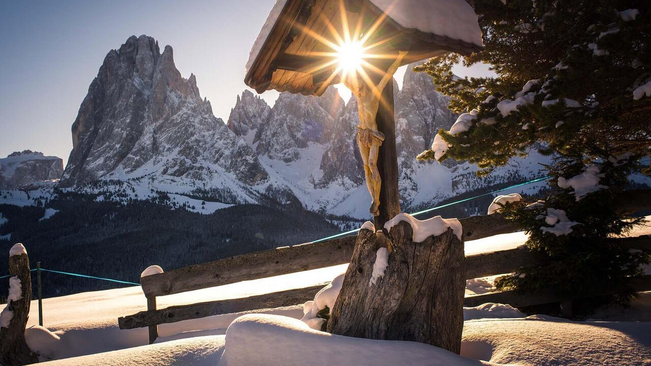 Ein einheimischer Guide begleitet Sie durch die tief verschneite Winterlandschaft der Seiser Alm.