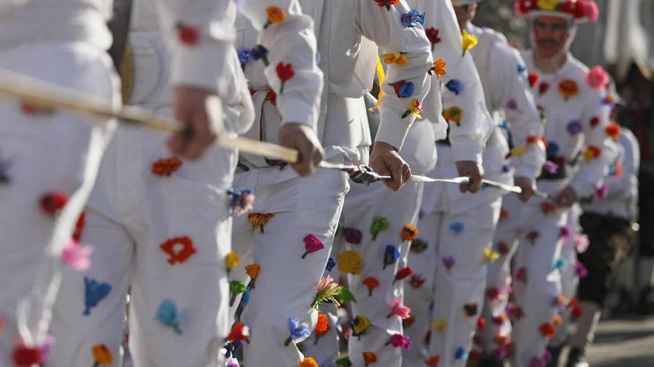 Faschingsumzug und Winteraustreiben in Prad am Stilfserjoch am Unsinnigen Donnerstag.