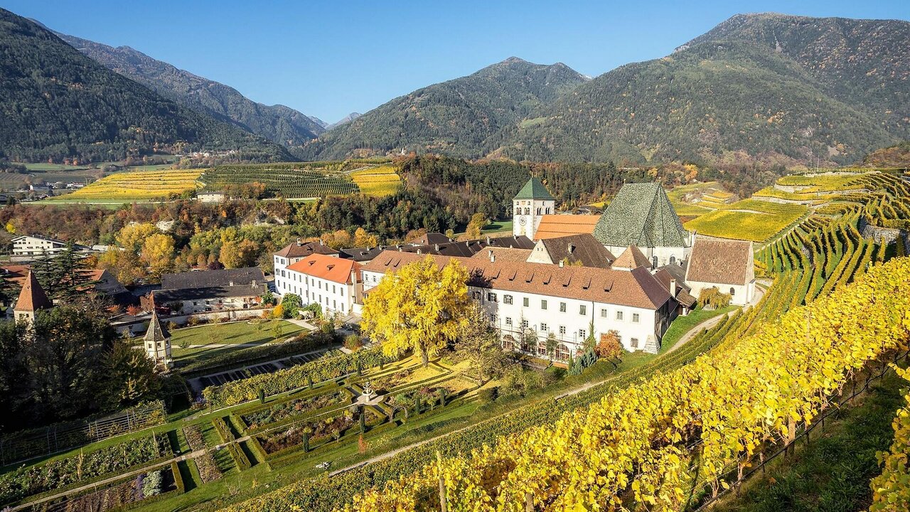 Von Brixen führt der Weg sanft ansteigend durch die Weinreben bis zum Kloster Neustift. Schritt für Schritt öffnen sich weite Ausblicke über die Stadt und die herbstlich gefärbten Reben. Das traditionsreiche Kloster prägt seit Jahrhunderten die Kulturlandschaft und den Weinbau der Region. Bei einer geführten Weinbergbegehung erhalten wir Einblicke in die Arbeit im Weinberg und in die lange Weinbautradition des Stifts. Im Anschluss werden ausgewählte Weine verkostet (inklusive) – ein authentischer Eindruck der Böden und des Terroirs rund um Neustift. Danach geht es weiter zum Buschenschank Burgerhof Meßner. Kathrin und Johannes servieren bodenständige Südtiroler Küche, von der „Burgerjause“ mit hofeigenen Bio-Produkten bis zu warmen Gerichten (Speisen und Getränke nicht inklusive). Dazu genießen wir den Blick über die umliegenden Weinberge und hinunter nach Brixen.