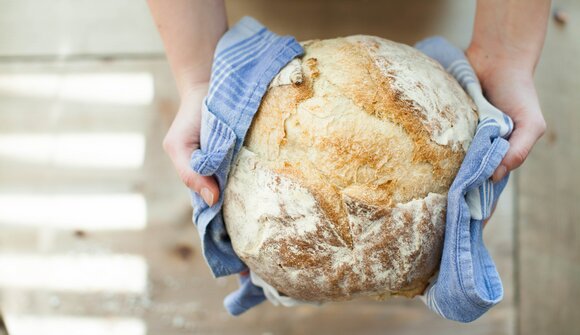 Self-ground grain is baked together with natural yeast and rich spices into fragrant farmhouse bread.