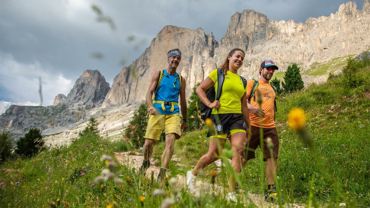 Start: 08:00 am, bus stop Welschnofen | Nova Levante centre | Duration: 7,5 h | Walking time: 6 h | Difference in altitude: ascent: 832 m, descent: 832 m | Length: 11,7 km | Difficulty: difficult (only for experienced mountain hikers) | with refreshment stop at the Roda di Vael hut (not included) | it is recommended to bring a lunch pack and drinks | Equipment: trekking shoes, warm clothing, headgear, rain protection | Costs: cable car Welschnofen | Nova Levante + cable car König Laurin I+II (back and forth) Euro 36.00/adult, Euro 25.00/junior (born after 01.01.2008) or Eggental Mountain Pass | Price: Euro 10.00/adult; Euro 5.00/junior (6-13 years) | Number of participants: min. 2, max. 10