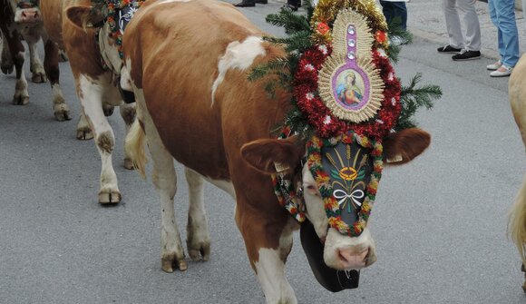 Festivities begin at 10:00am with a farmer’s market where you can buy fresh and local goods. Dancing and live music by “Die jungen Höllnstoana” folklore group and “Kasermandl Duo” is scheduled to start by noon. The Zillertal wind ensemble will perform at 1:00pm. At the same time, the cows will be decorated with headdresses and bells. The herds are expected to arrive at the festivity area around 2:00pm.