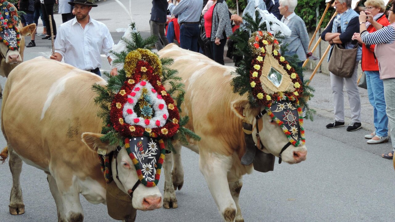 The cattle will be driven down from the Gfrillner Laugen Alpine pasture and is expected to arrive around 1:00 PM.