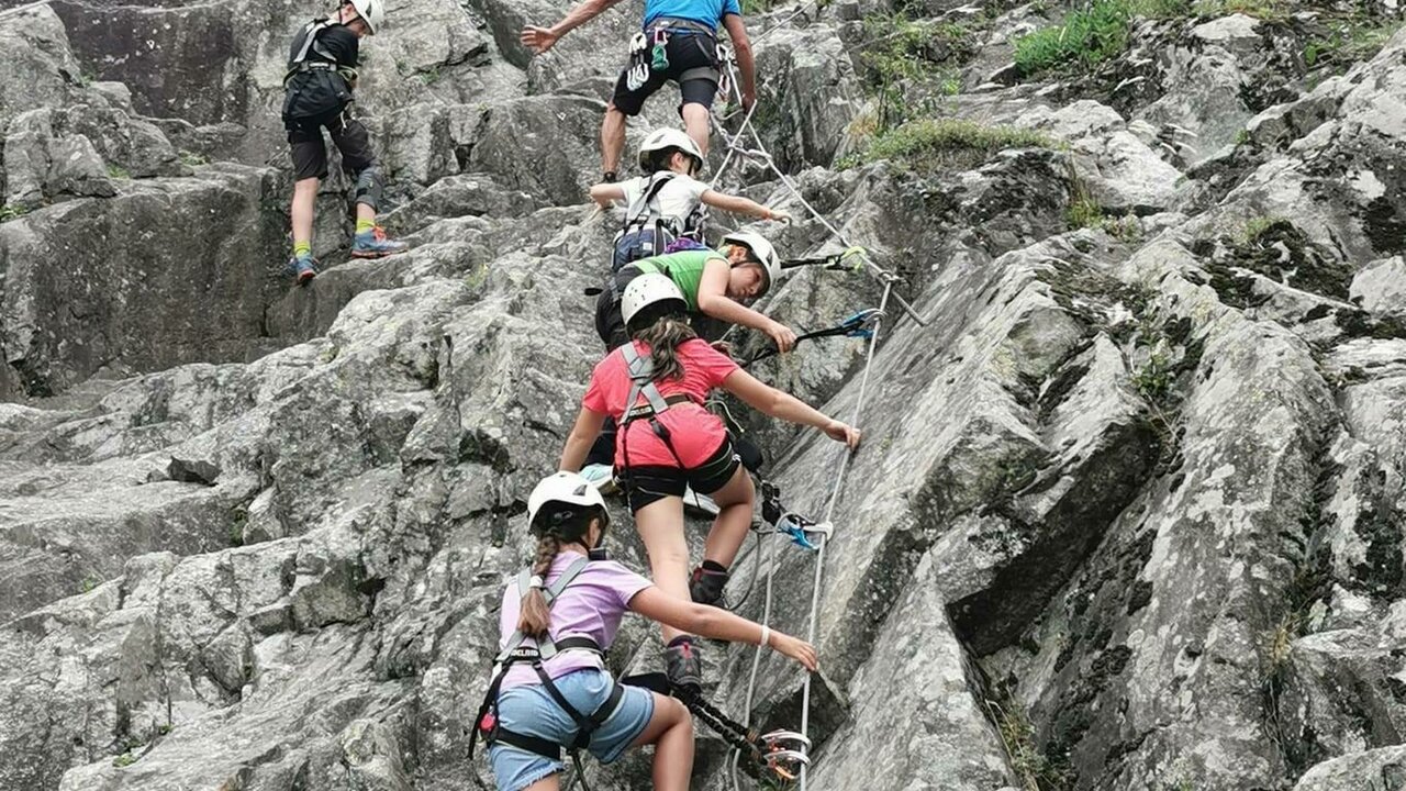 In the climbing hall, children can learn the basics of using ropes and carabiners in a playful way on a 20-metre high climbing wall. Parents can help by belaying their children or give climbing a try themselves. There is a slackline for balance training, too.