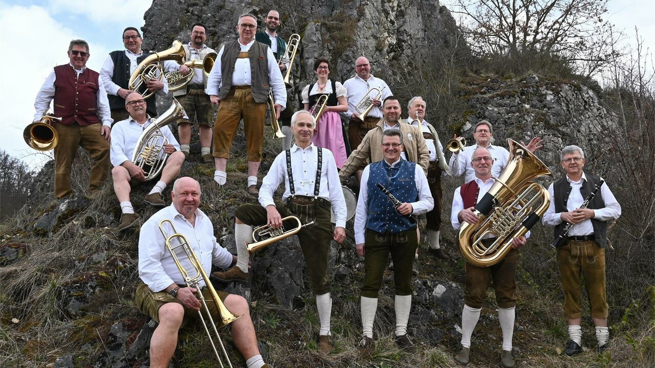The "Kogelstoiner Musikanten" music band does one of their concerts at the Raiffeisen square.