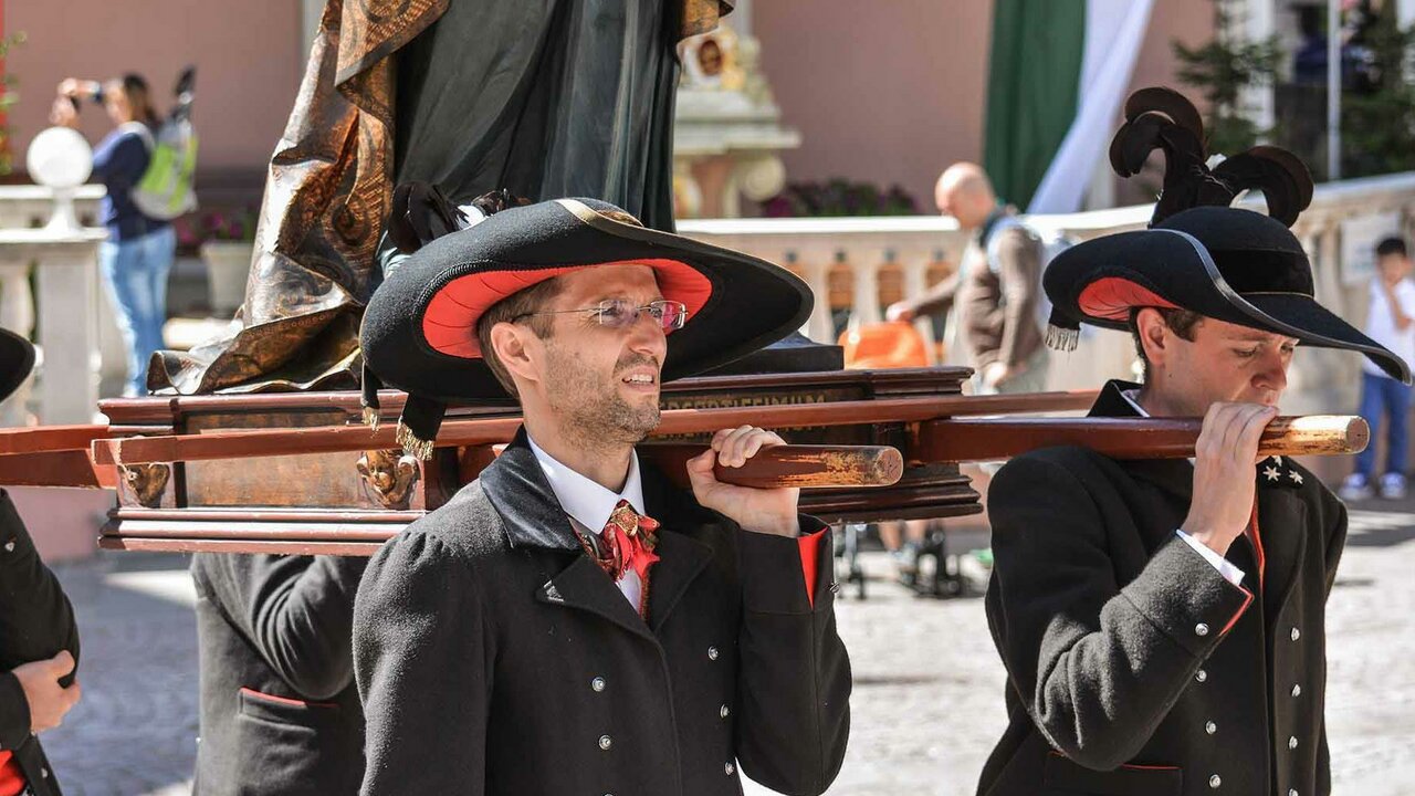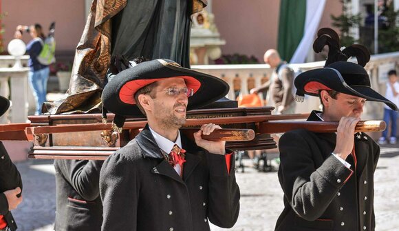 The feast of Corpus Christi is celebrated in South Tyrol every year on the second Thursday after Pentecost. Corpus Christi celebrating the abiding presence of Jesus Christ in the Eucharist. The parade of the traditional Val Gardena costumes starts at 7.35 a.m. from S. Antonio square, through the pedestrian area, to the parish church of Ortisei. Here, the Corpus Christi is celebrated with a solemn mass at 8.00 a.m. The mass is followed by a procession in which the entire village community participates with great devotion and in which the Blessed Sacrament is carried through the centre of the village.