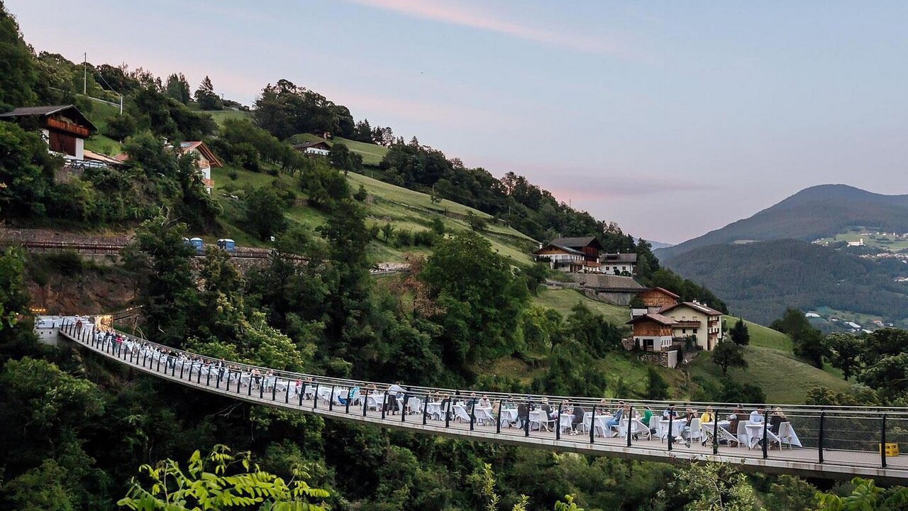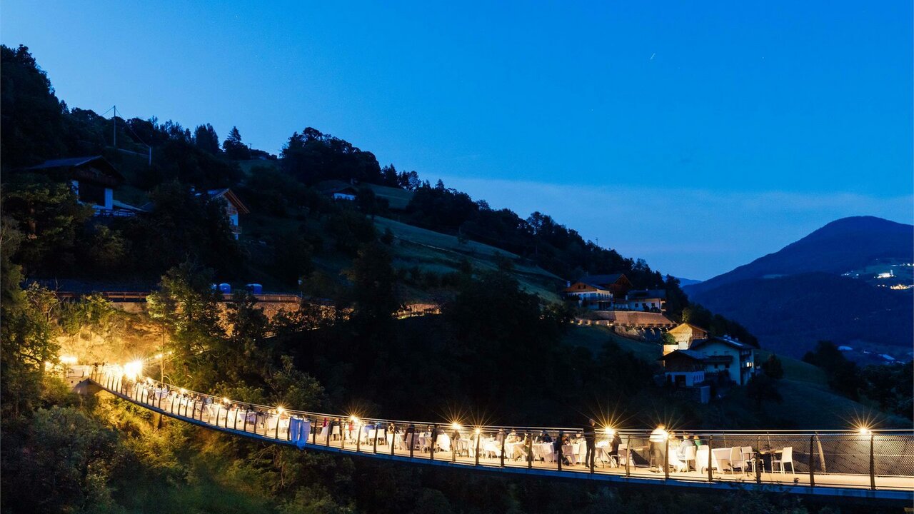 Special culinary delights on the 55 m high suspension bridge with panoramic view at the Barbian waterfalls and the Eisacktal Valley.