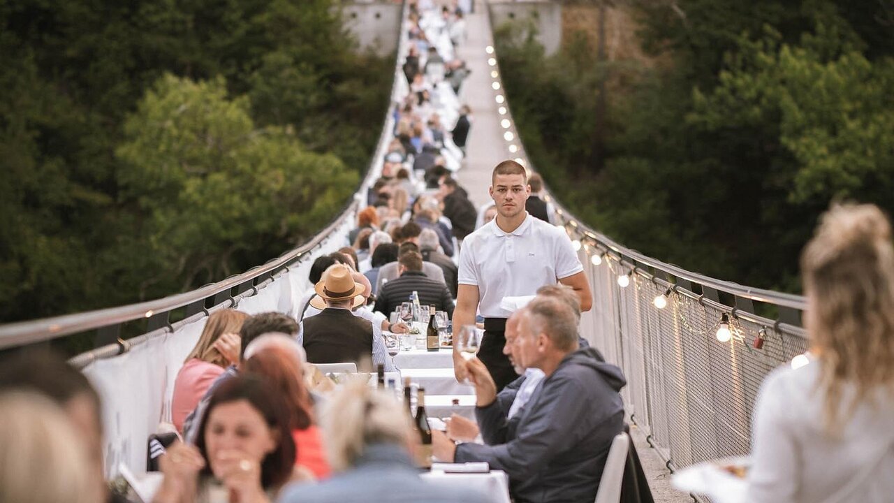 A summer evening full of indulgence, special views and unforgettable moments: at the "Barbian Genussbrücke", an exclusive culinary experience awaits you at a height of 55 metres, with breathtaking panoramic views of the Barbian Waterfalls and the Isarco Valley.