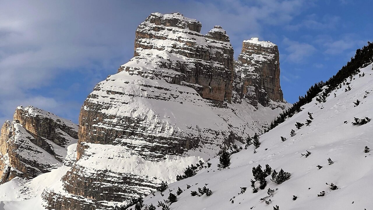 The starting point is the Popena bridge on the access road to Lake Misurina. The trail first follows the Rio Popena gently uphill. Already during the ascent, you can admire the majestic Dolomite peaks – a UNESCO World Heritage Site – in all their glory. Further up, the valley opens up, offering stunning views of the Cristallino di Misurina and Monte Popena. At around 2000 m, the forest begins to thin out and the terrain becomes more open. The route continues to the Sella di Popena, where you enjoy a magnificent panorama of the entire valley and Lake Misurina. In good conditions, you can extend the tour to the Corno d’Angolo. The return follows the same route.
