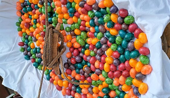 Traditional "Pecken" and sale of quality products from the farms of Fie at the church square.