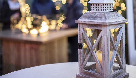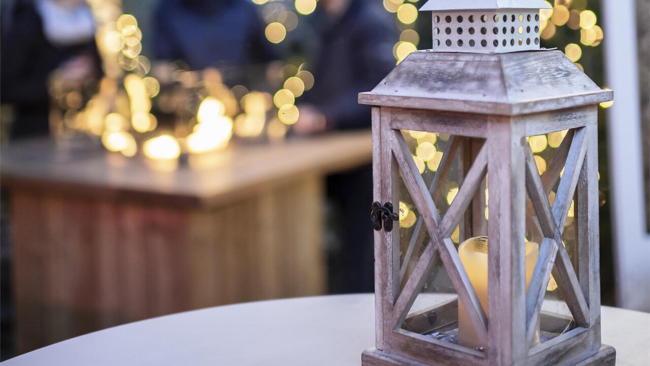 Lanterns and a full moon are the perfect companions on this quiet hike through snow-covered forests, past white-dusted trees and frozen streams.