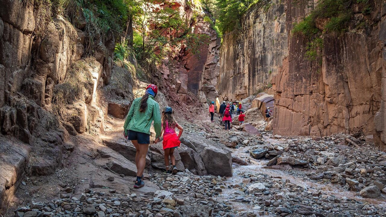 40 million years of Earth's history at every step – that’s what the Dolomites tour in the GEOPARC Bletterbach offers. The hike starts with the remains of a massive supervolcano, continues into the mysterious land of the dinosaurs, and ends in a primeval marine landscape. Those who carefully walk along the stream bed and keep their eyes open among the boulders can discover fossilized traces from long ago. Accompanied by an experienced hiking guide, nature enthusiasts experience up close how an impressive landscape has formed over millions of years. With good footwear, a snack in your backpack, and a sense of adventure, the tour becomes an unforgettable journey through the geological history of the Dolomites.