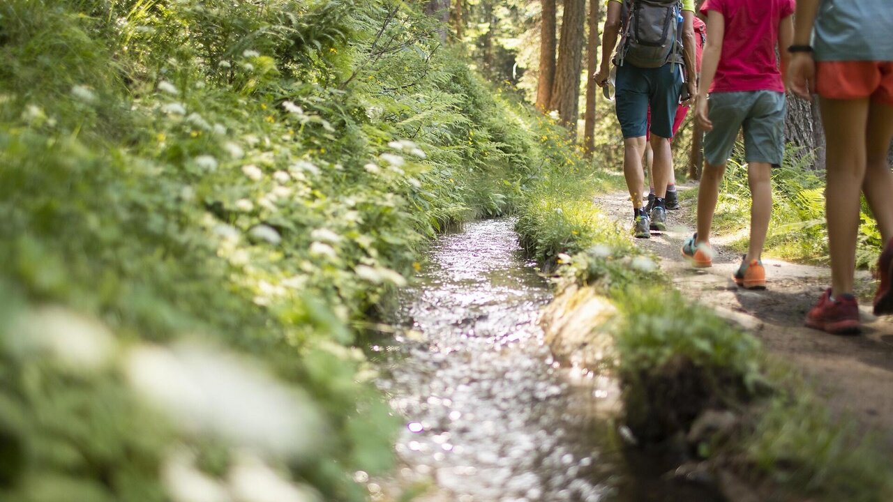 Path to the Ulfaseralm. From there we head uphill to the Schartalm, where we stop for a bite to eat. Afterwards we take the "Hahnl" with us and here we start the descent to the "Waalerhütte" and return to the car park via the Ulfaser/Matatzer Waalweg.