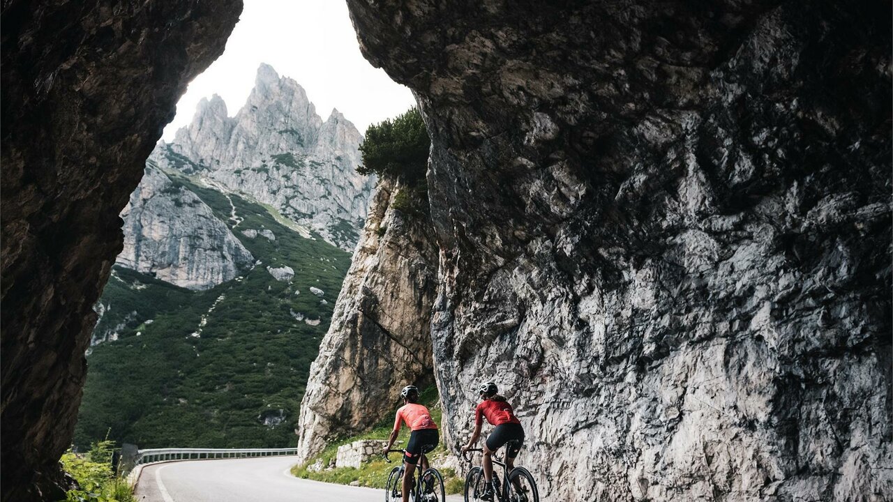 Road bike experience on the Dolomites Bike Day route, which includes the majestic Campolongo, Falzarego and Valparola passes (55 km, 1,400 m altitude difference).