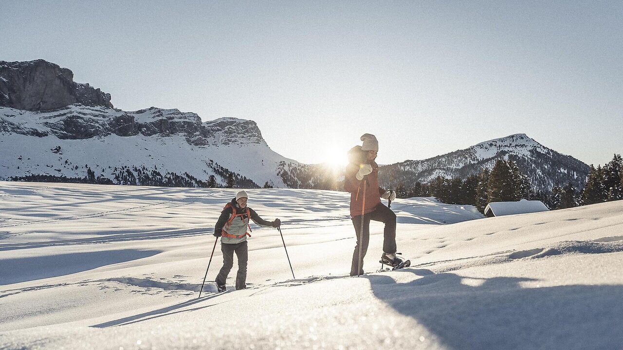 Snowshoe tour along the crest of Raschötz in direction Brogles to the hut Geisleralm.