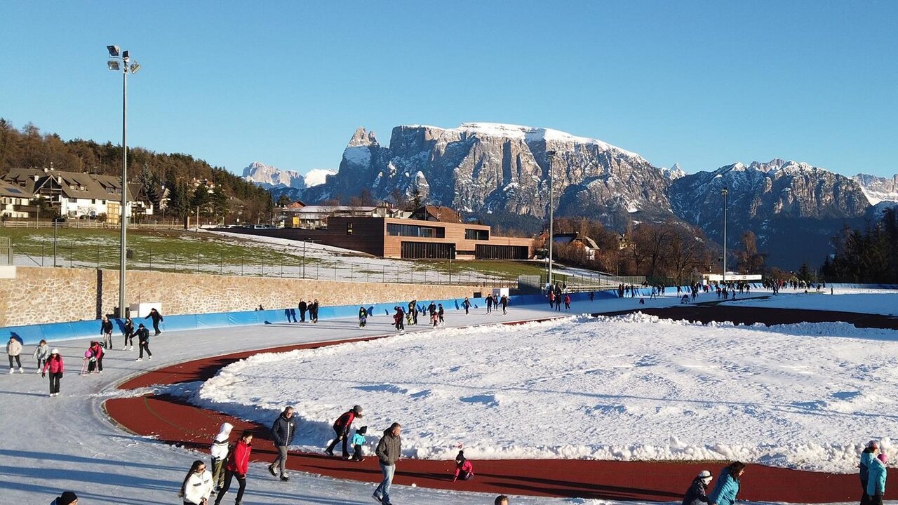 The Spielewelt Eppan and clown Berta ensure games and fun. Raika Ritten covers the costs for admission and skate rental