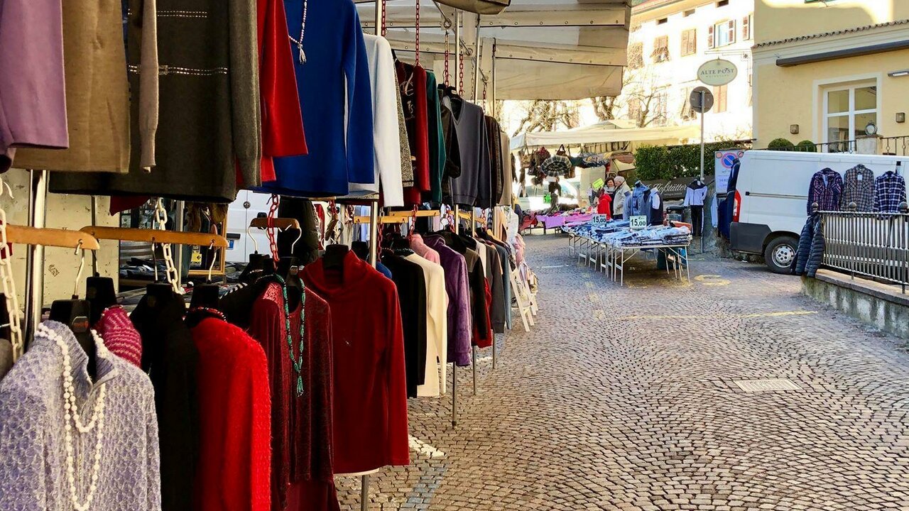 The small, fine market on the town hall square in Tramin offers all sorts of things: from sweaters and T-shirts to leather goods. The Tramin market only takes place once a month. A detour is always worthwhile!