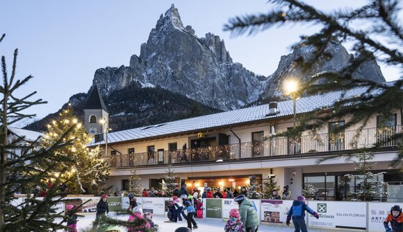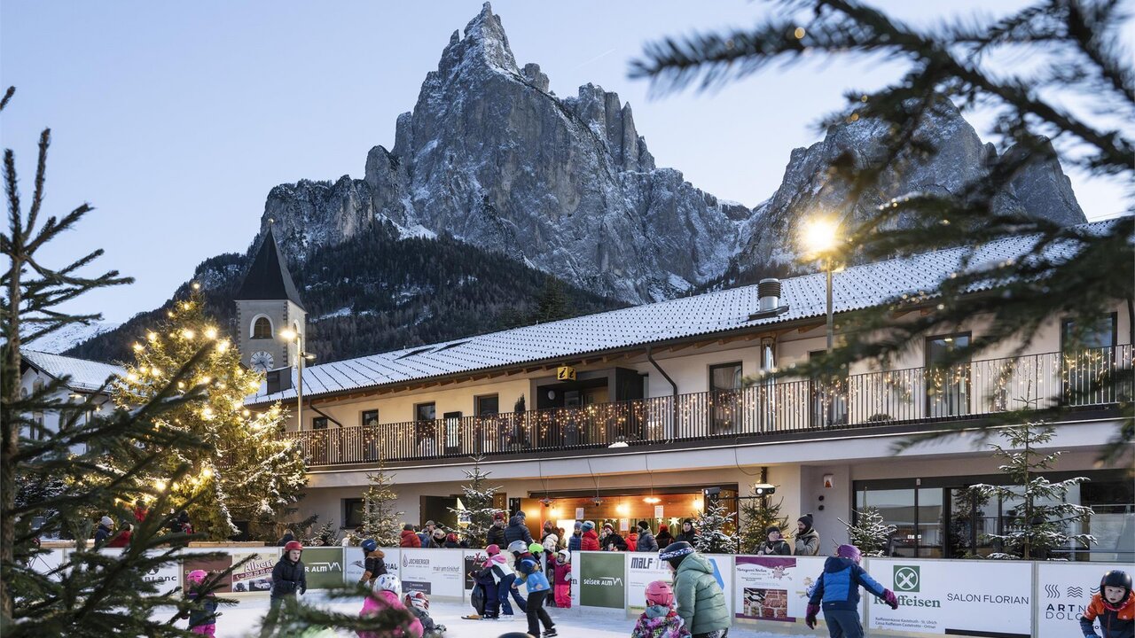 Concert with "Zomsingen" at the village square of Seis am Schlern.