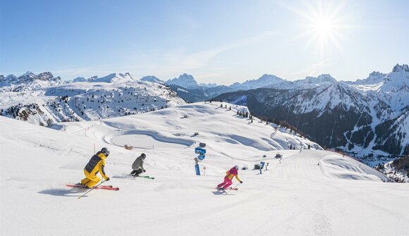 The Sellaronda is probably one of the most famous ski circuits. The tour runs over the four Dolomite passes around the Sella massif. You pass through the Ladin valleys of Val Gardena, Alta Badia, Arabba and Val di Fassa. The tour is 40 km long in total, 27 km of which are pure skiing pleasure.