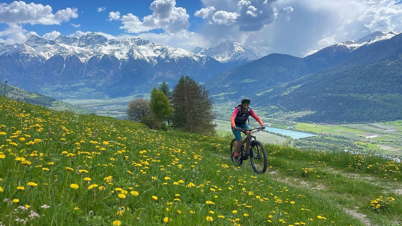 Together with MTB guide Eugen, you will explore the sunny slopes of the Vinschgau Sonnenberg mountain on this easy spring e-bike tour.