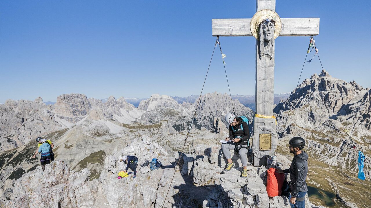 Enter the via ferrata at the first rays of sunlight. Up to the summit cross, everyone can enjoy the quiet dawn in the Dolomites for themselves. Experience a fascinating sunrise with a stunning view of the Three Peaks at the summit of the Paternkofel. Arrived at the Tre Cime di Lavaredo Hut, the day is still young, there is the possibility - depending on your desire and condition - to continue to enjoy the Three Peaks and return to the starting point by public transport. Backpack provision.
