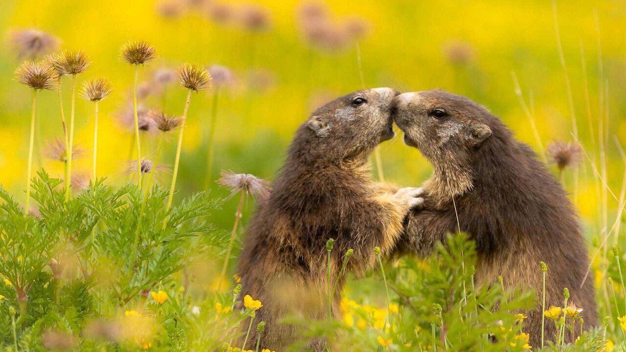 Observe a colony of marmots at work in the National Park, as they scurry about their activities.